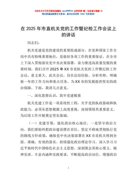 / 在2025年市直机关党的工作暨纪检工作会议上的讲话