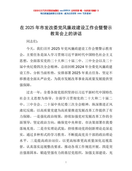 / 在2025年市发改委党风廉政建设工作会暨警示教育会上的讲话