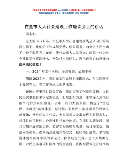 / 在全市人大社会建设工作座谈会上的讲话