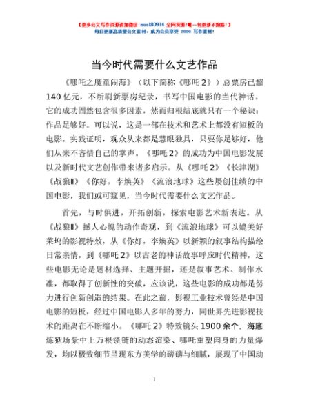 当今时代需要什么文艺作品