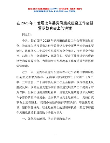/ 在2025年市发展改革委党风廉政建设工作会暨警示教育会上的讲话