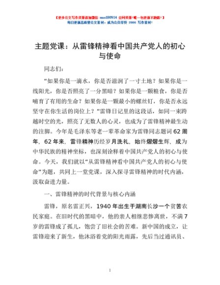 主题党课:从雷锋精神看中国共产党人的初心与使命