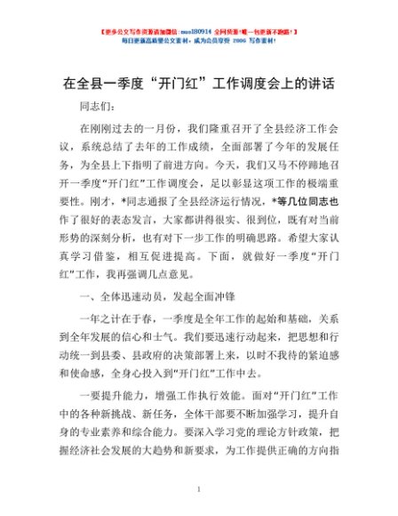 / 在全县一季度“开门红”工作调度会上的讲话