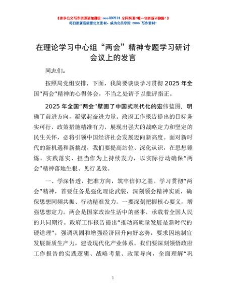 / 在理论学习中心组“两会”精神专题学习研讨会议上的发言