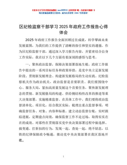 / 区纪检监察干部学习2025年政府工作报告心得体会