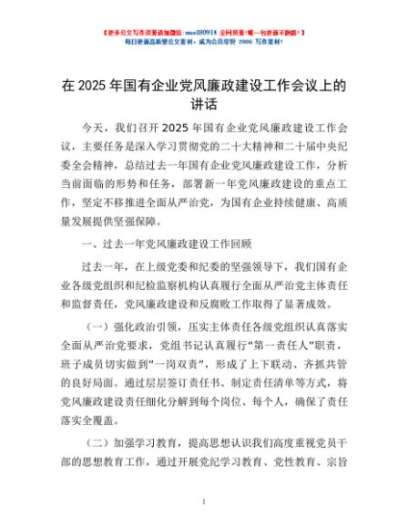 / 在2025年国有企业党风廉政建设工作会议上的讲话
