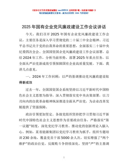/ 2025 年国有企业党风廉政建设工作会议讲话
