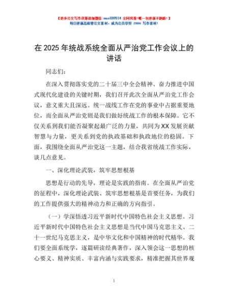 / 在2025年统战系统全面从严治党工作会议上的讲话