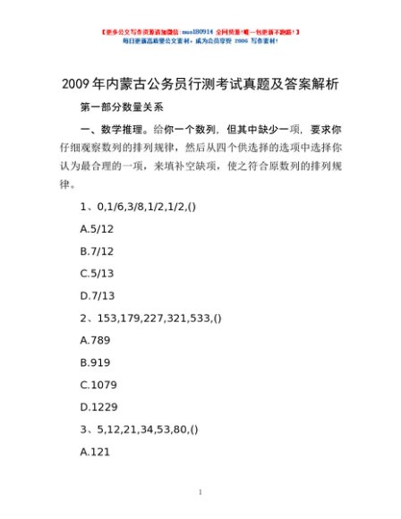/ 2009年内蒙古公务员行测考试真题及答案解析