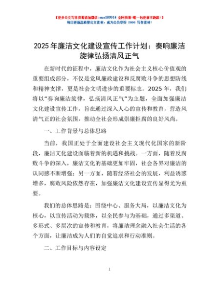 / 2025年廉洁文化建设宣传工作计划:奏响廉洁旋律 弘扬清风正气