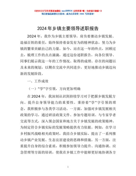 / 2024年乡镇主要领导述职报告