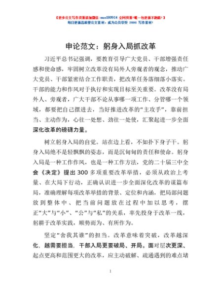 / 申论范文:躬身入局抓改革