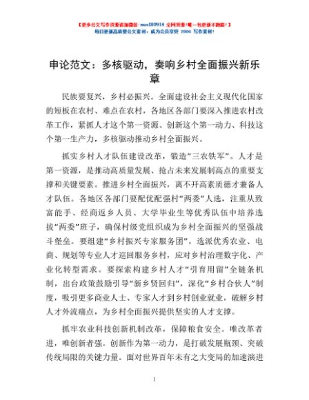 / 申论范文:多核驱动,奏响乡村全面振兴新乐章