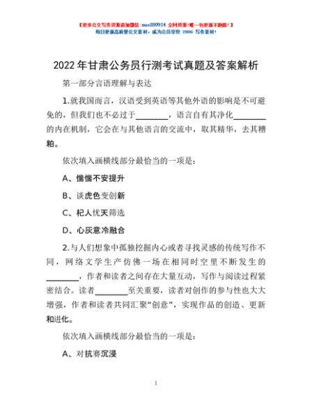 / 2022年甘肃公务员行测考试真题及答案解析