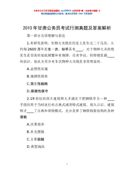 2010年甘肃公务员考试行测真题及答案解析