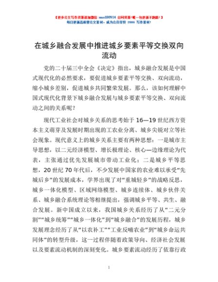 / 在城乡融合发展中推进城乡要素平等交换双向流动