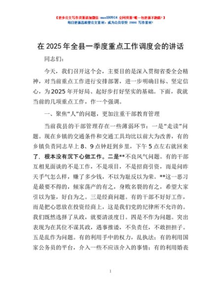 / 在2025年全县一季度重点工作调度会的讲话