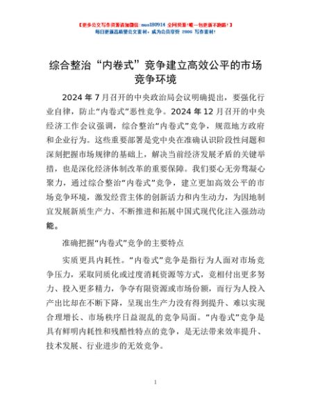 / 综合整治“内卷式”竞争建立高效公平的市场竞争环境