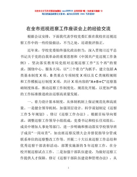 / 在全市巡视巡察工作座谈会上的经验交流