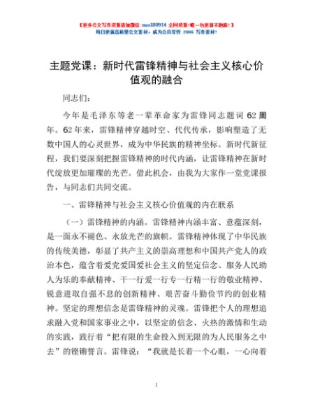 / 主题党课:新时代雷锋精神与社会主义核心价值观的融合