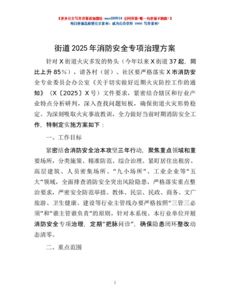 / 街道2025年消防安全专项治理方案
