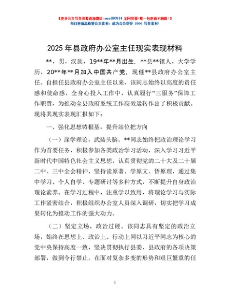 / 2025年县政府办公室主任现实表现材料