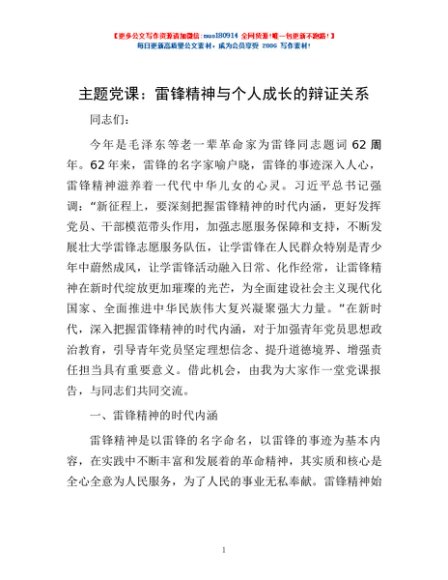 / 主题党课:雷锋精神与个人成长的辩证关系
