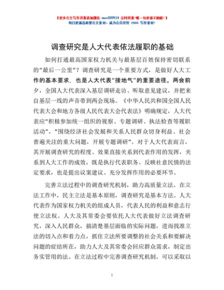 / 调查研究是人大代表依法履职的基础