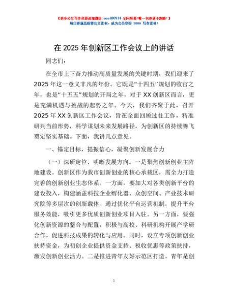 / 在2025年创新区工作会议上的讲话