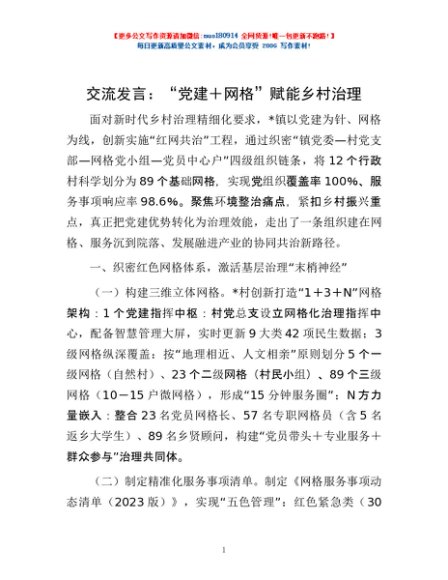 交流发言:“党建+网格”赋能乡村治理
