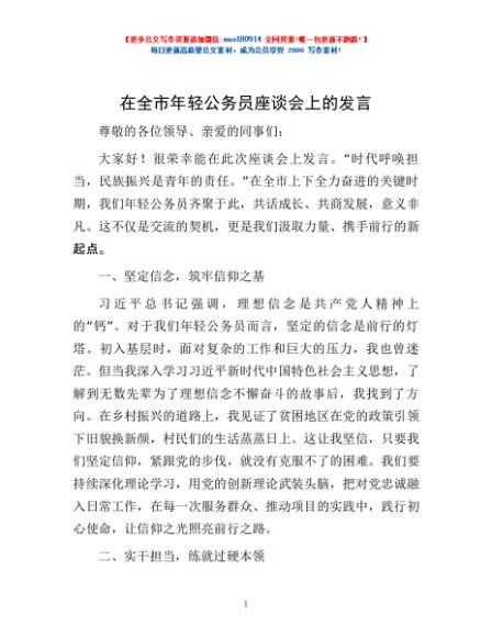 / 在全市年轻公务员座谈会上的发言