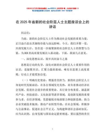 / 在2025年省新的社会阶层人士主题座谈会上的讲话