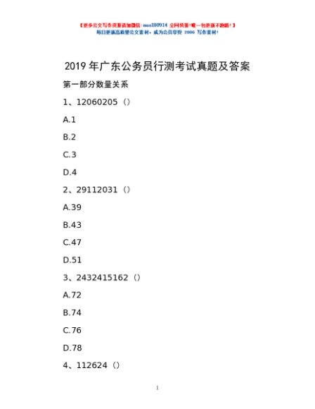 / 2019年广东公务员行测考试真题及答案