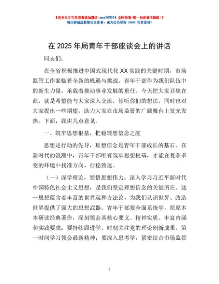 / 在2025年局青年干部座谈会上的讲话