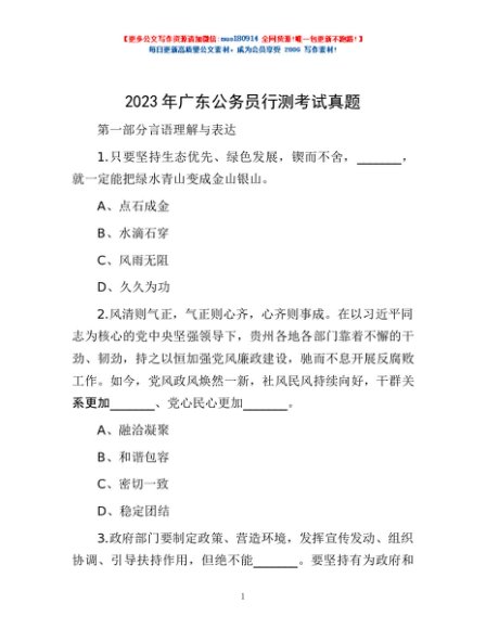 / 2023年广东公务员行测考试真题