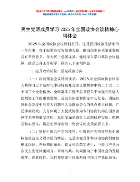 / 民主党派成员学习2025年全国政协会议精神心得体会