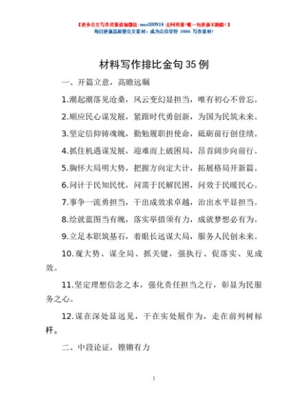 / 材料写作排比金句35例