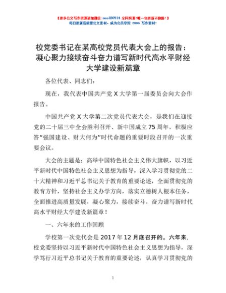 / 校党委书记在某高校党员代表大会上的报告:凝心聚力 接续奋斗 奋力谱写新时代高水平财经大学建设新篇章