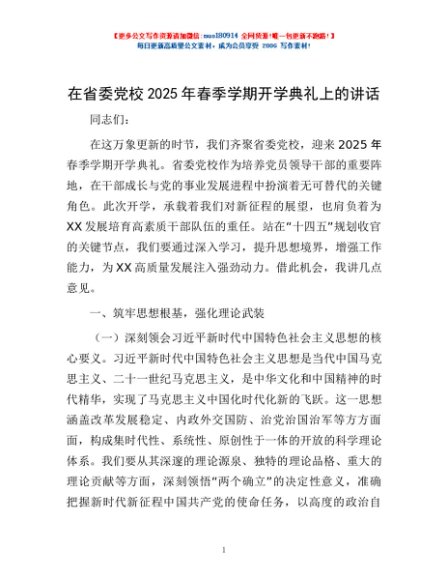 / 在省委党校2025年春季学期开学典礼上的讲话