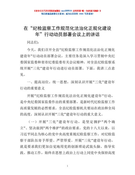 / 在“纪检监察工作规范化法治化正规化建设年”行动动员部署会议上的讲话