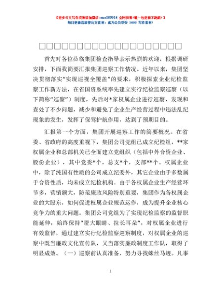 / 迎接上级纪检监察工作组调研时的汇报提纲