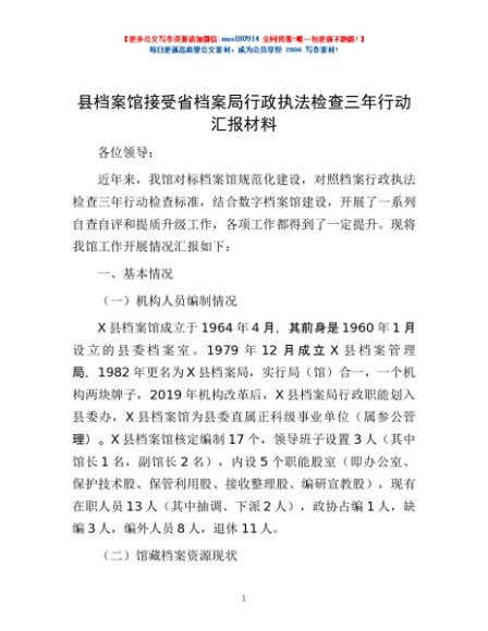 / 县档案馆接受省档案局行政执法检查三年行动汇报材料