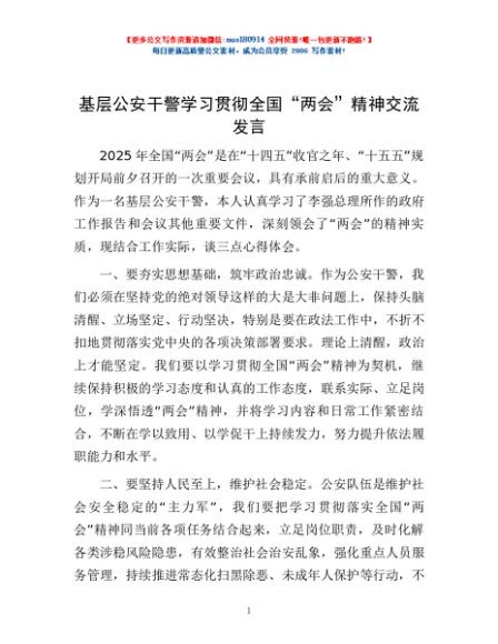 / 基层公安干警学习贯彻全国“两会”精神交流发言