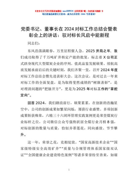 / 党委书记、董事长在2024对标工作总结会暨表彰会上的讲话:驭对标长风 启中能新程