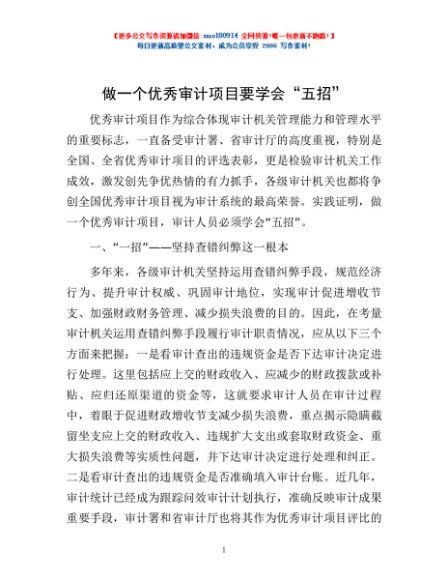 / 做一个优秀审计项目要学会“五招”