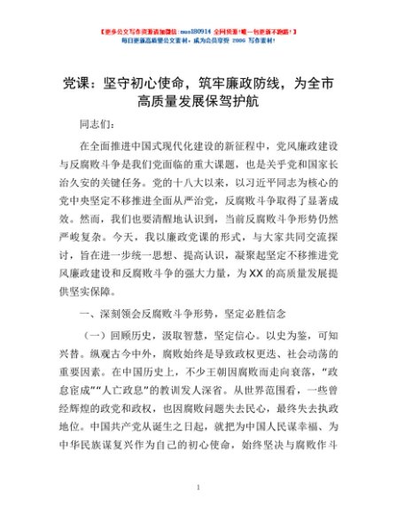党课:坚守初心使命,筑牢廉政防线,为全市高质量发展保驾护航