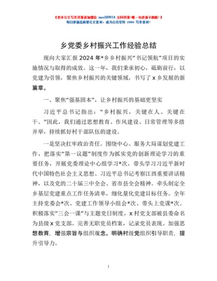 / 乡党委乡村振兴工作经验总结
