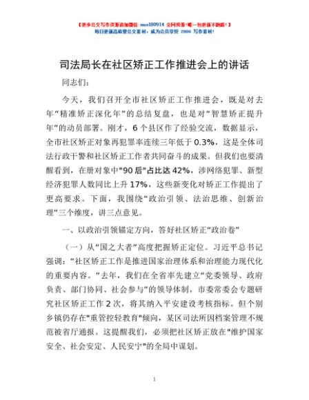 / 司法局长在社区矫正工作推进会上的讲话