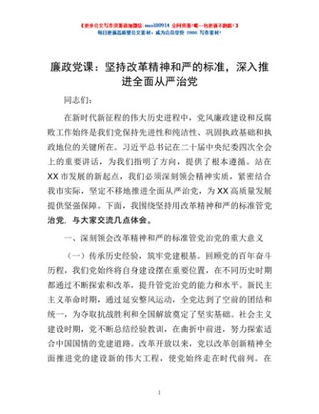 / 廉政党课:坚持改革精神和严的标准,深入推进全面从严治党