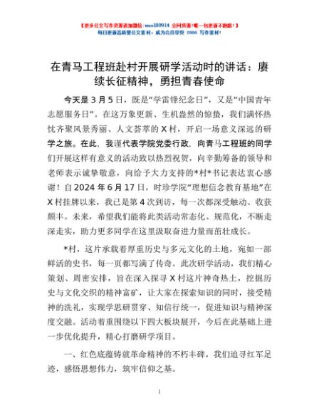 / 在青马工程班赴村开展研学活动时的讲话:赓续长征精神,勇担青春使命